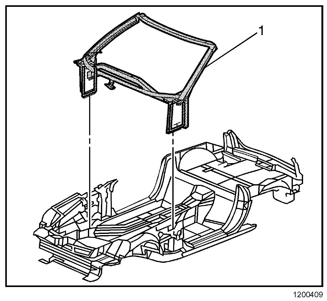 4. Install the windshield frame (1) to the vehicle.