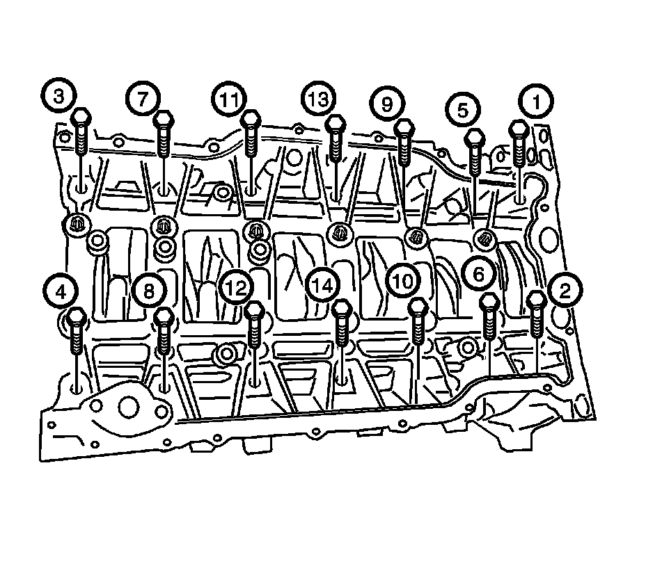 18. Remove the bed plate outer bolts in the sequence shown.
