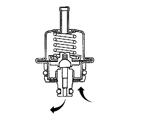 The fuel pressure regulator is a diaphragm relief valve. The diaphragm has fuel pressure on one side and regulator spring pressure and intake manifold vacuum on the other side. The fuel pressure regulator maintains a constant pressure differential across the fuel injectors at all times. The pressure regulator compensates for engine load by increasing fuel pressure as the engine vacuum drops.