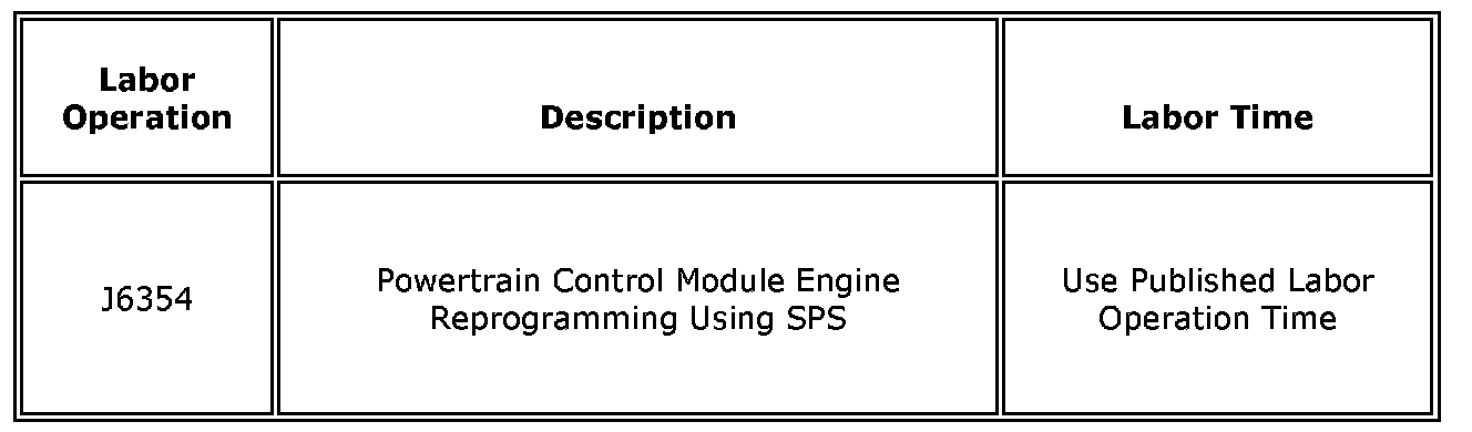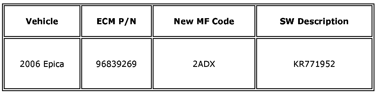 1. Reprogram the ECM with the appropriate calibration (or later) listed below. These calibrations, or any that follow, are designed to address this concern. Refer to Service Programming System (SPS) in SI.