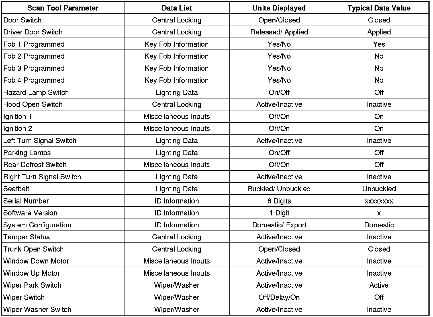 Scan Tool Data List