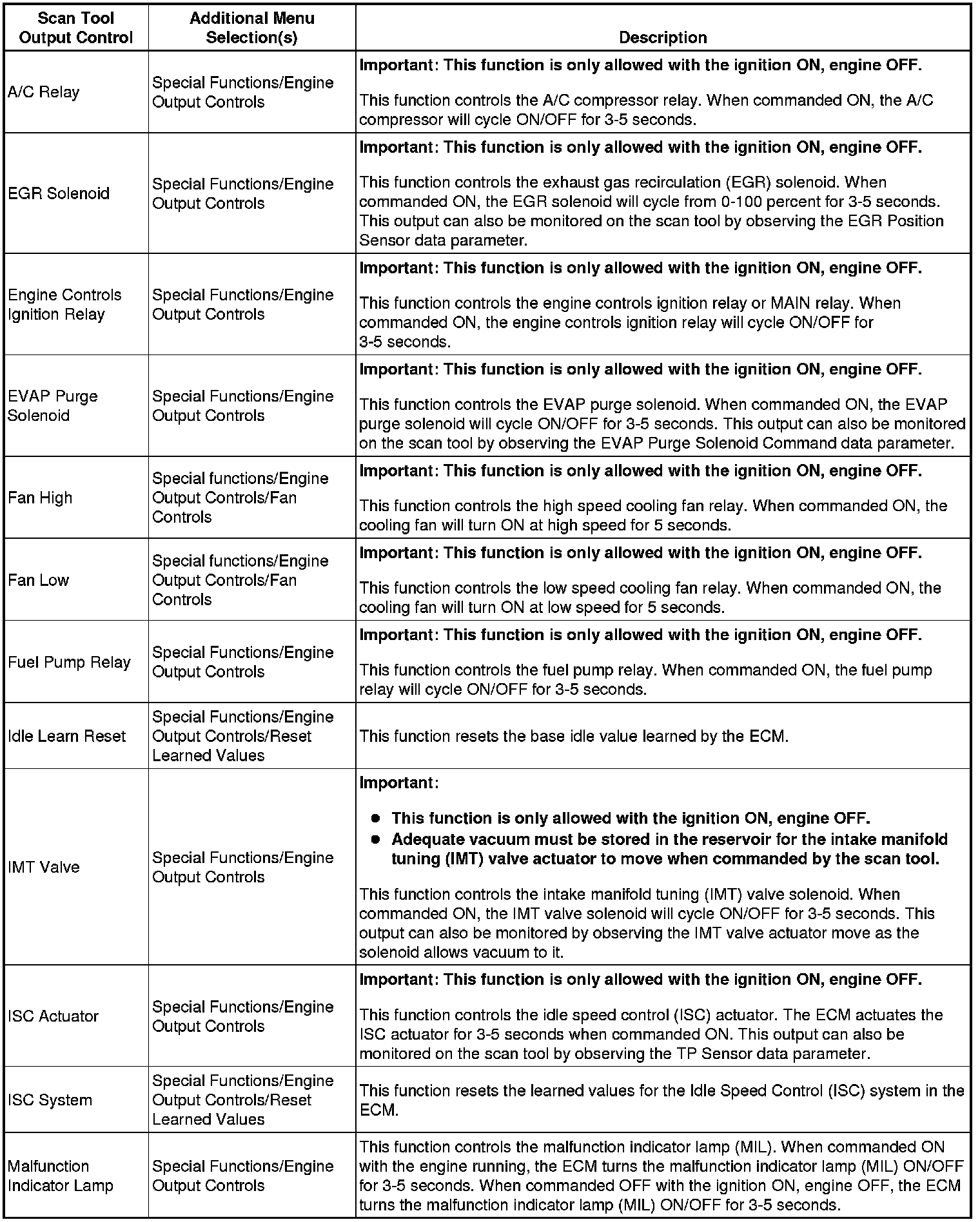 Scan Tool Output Controls