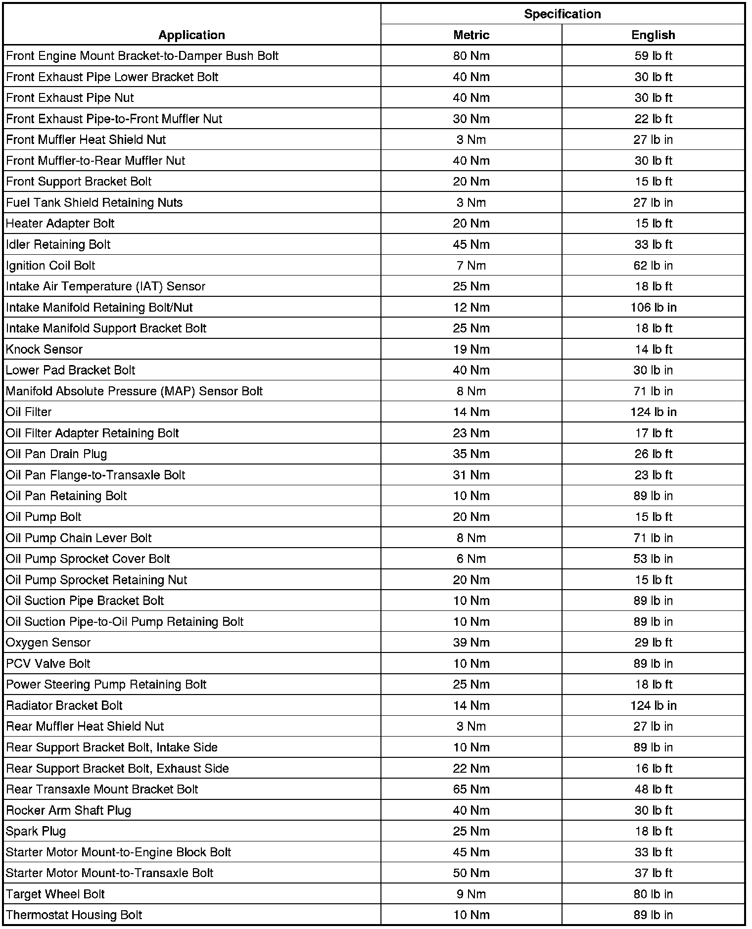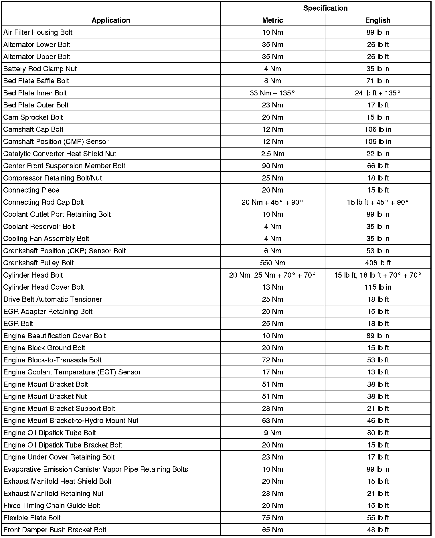 Fastener Tightening Specifications