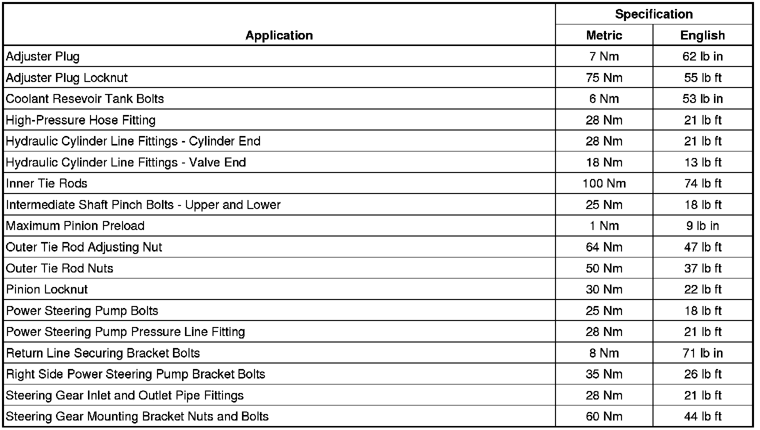 Fastener Tightening Specifications