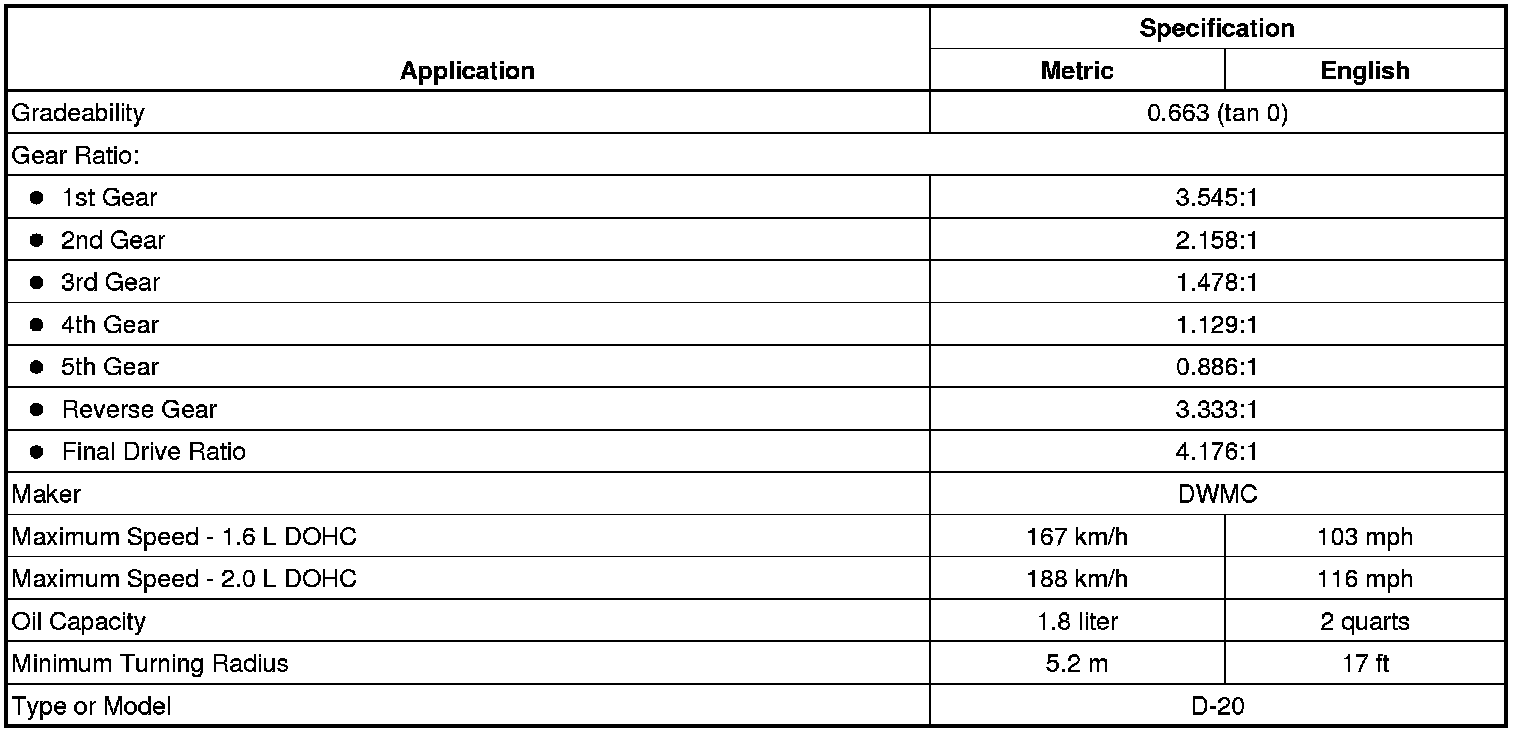 Manual Transmission Specifications (b)