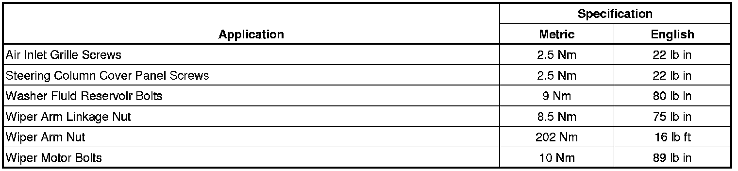 Wiper and Washer Systems: Specifications