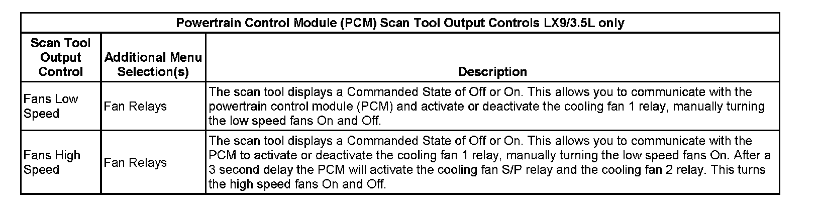Powertrain Control Module (PCM) Scan Tool Output Controls LX9/3.5L Only: