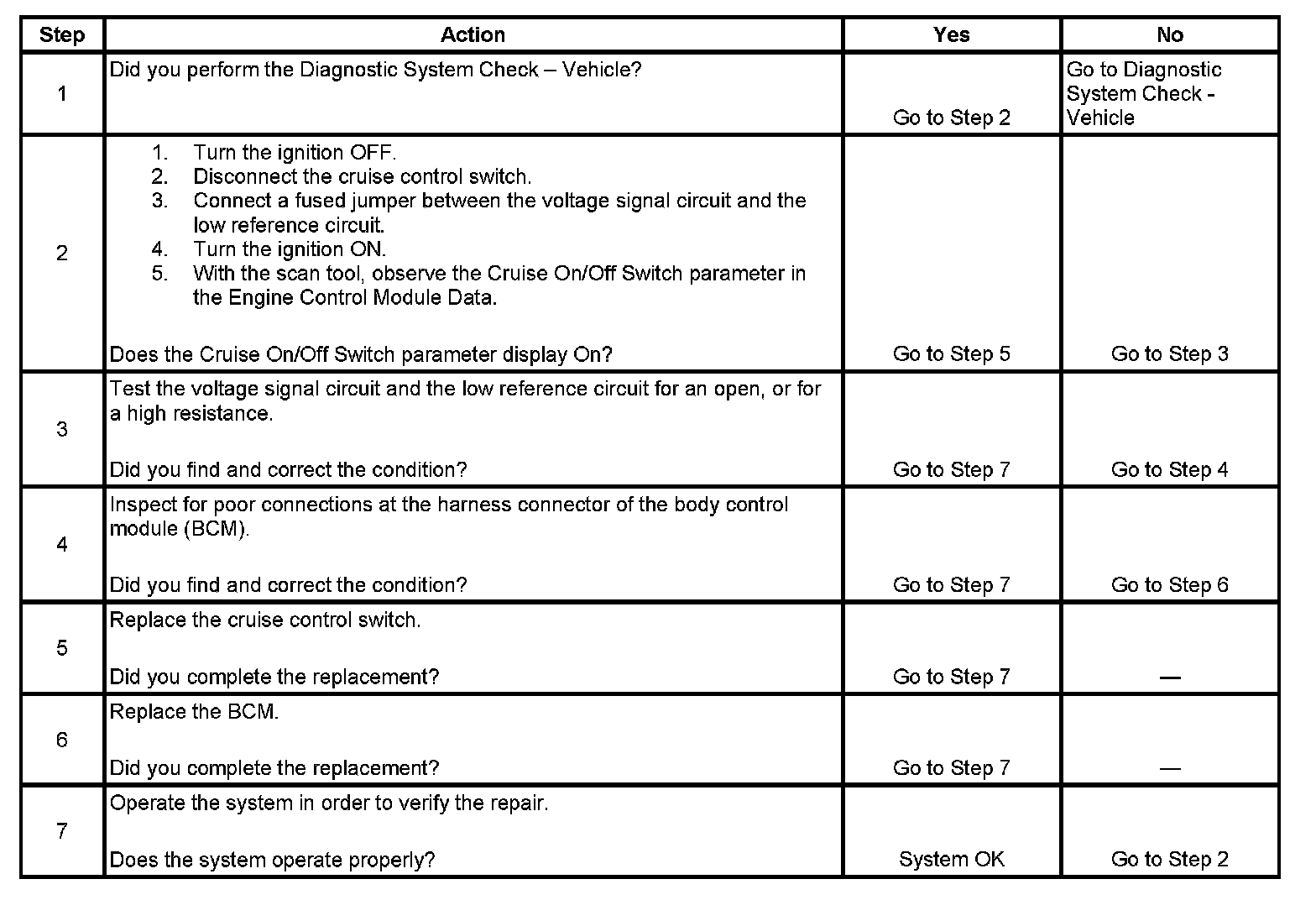 - For an intermittent condition, refer to Testing for Intermittent Conditions and Poor Connections. Component Tests and General Diagnostics