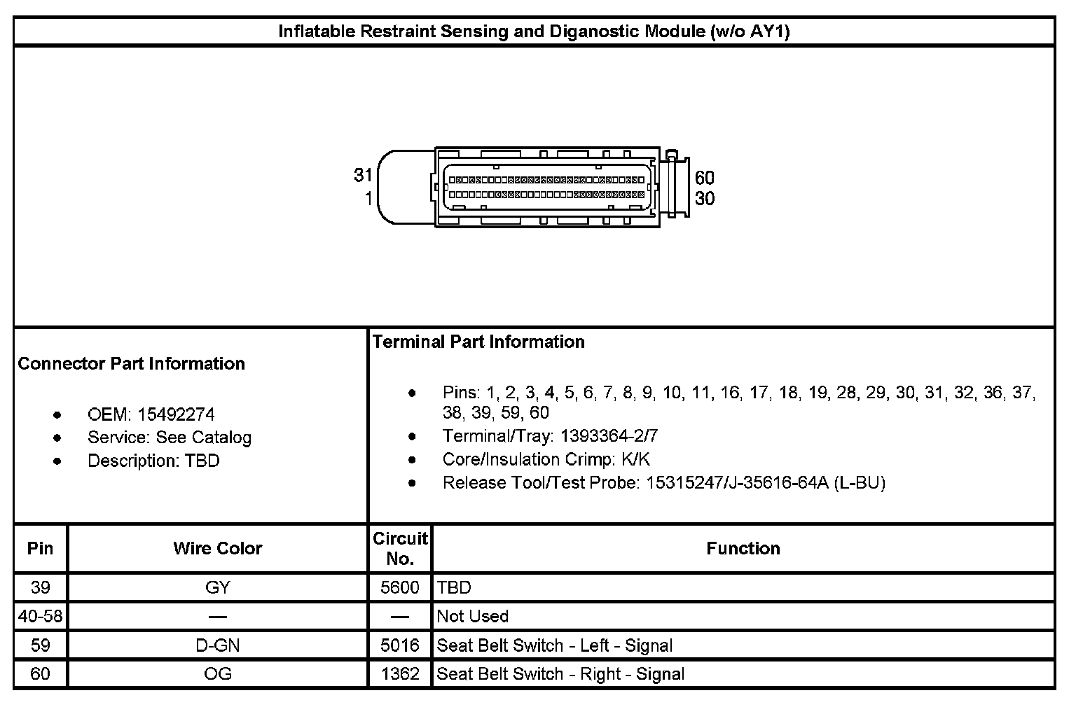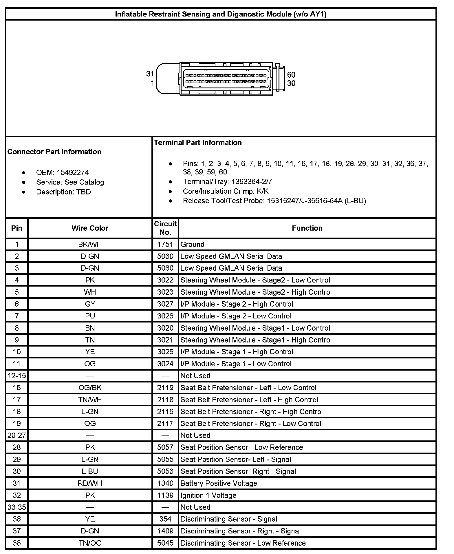 Inflatable Restraint Sensing and Diagnostic Module (Without RPO Code AY1)