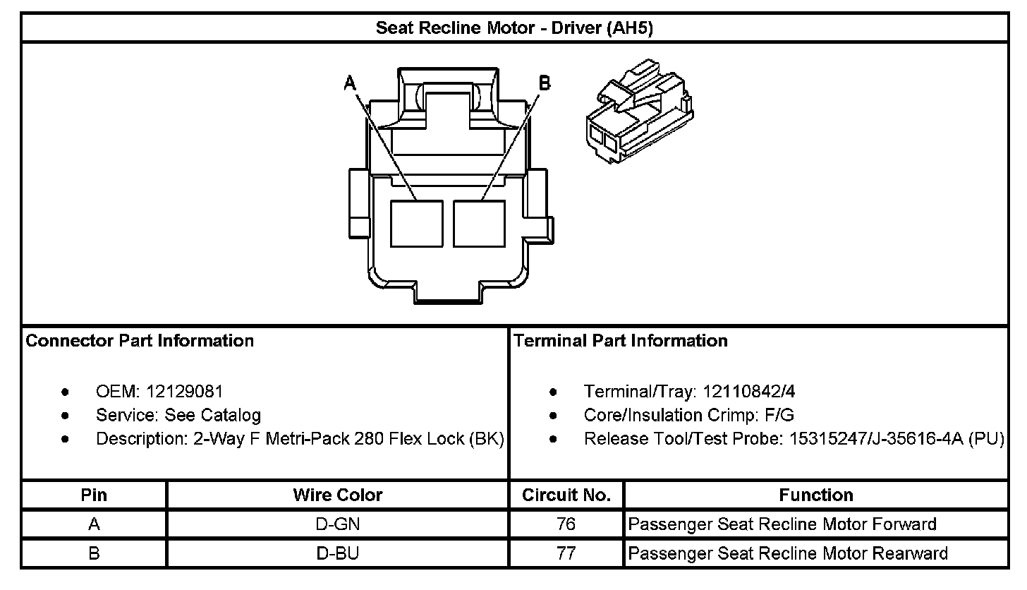 Seat Recline Motor - Driver (With RPO Code AH5):
