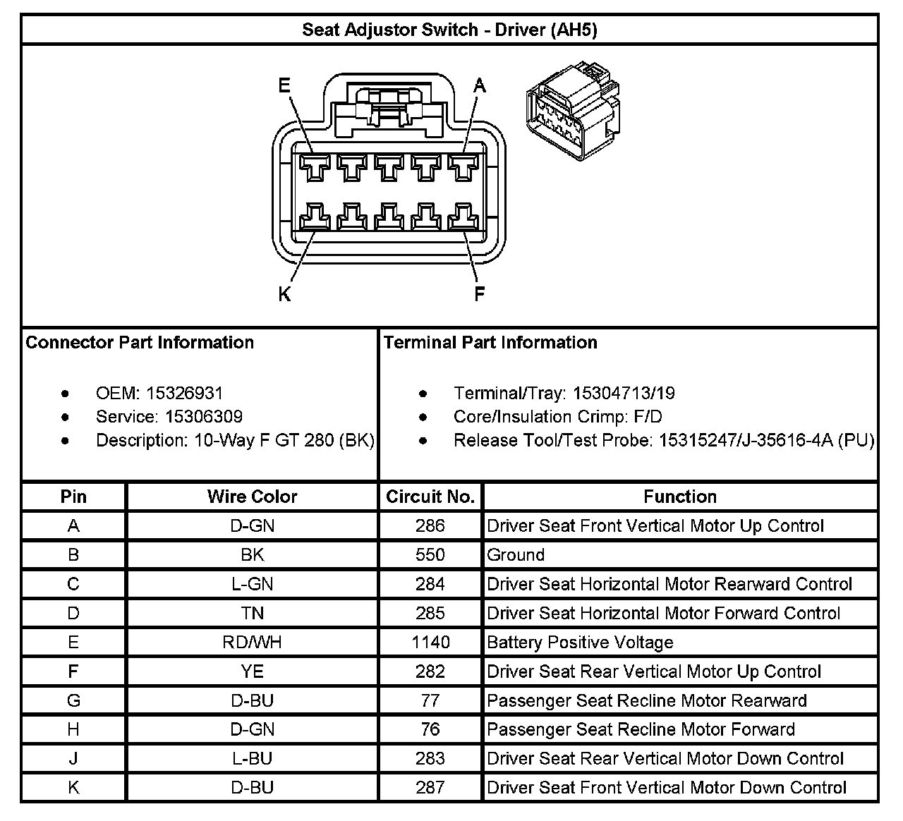 Seat Adjustor Switch - Driver (With RPO Code AH5):