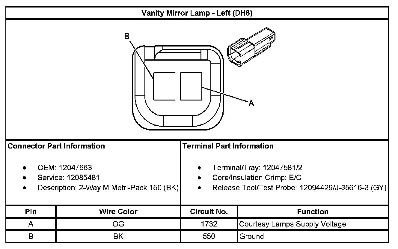 Vanity Mirror Lamp - Left (With RPO Code DH6):