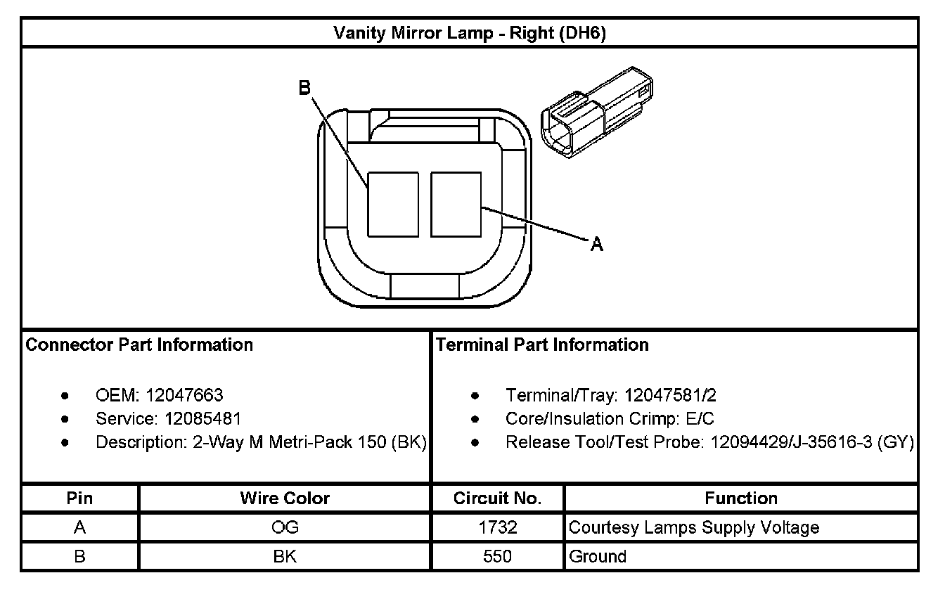 Vanity Mirror Lamp - Right (With RPO Code DH6):
