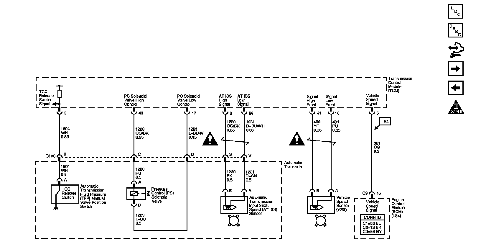 VSS, AT ISS Sensors, Pressure Control Solenoid Valve, and TCC Release Switch