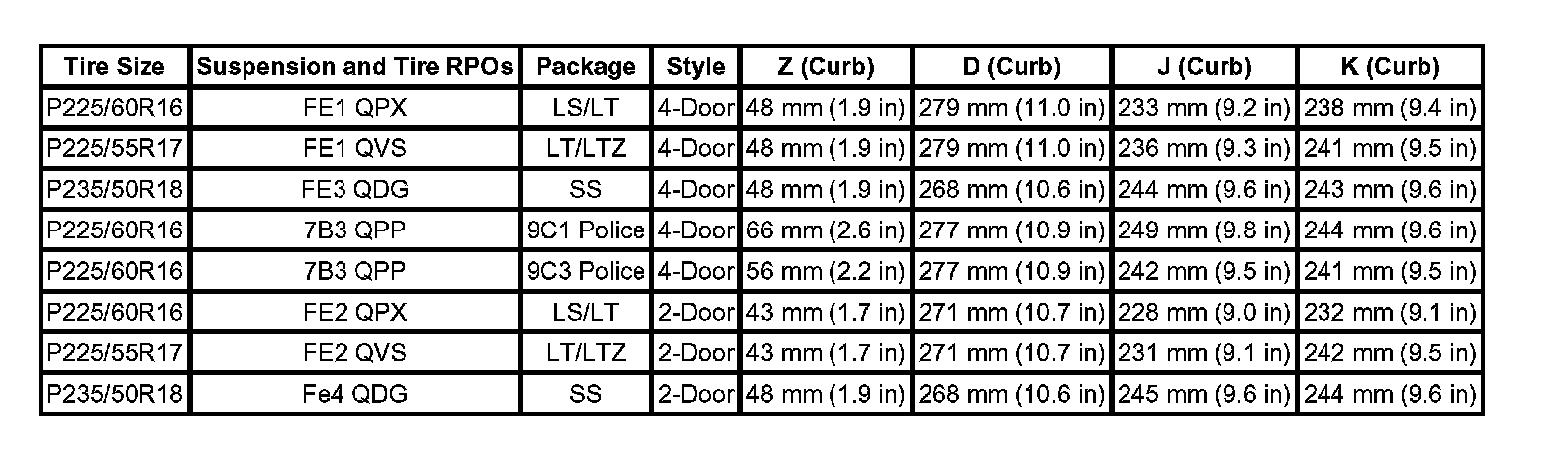 Trim Height Specifications: