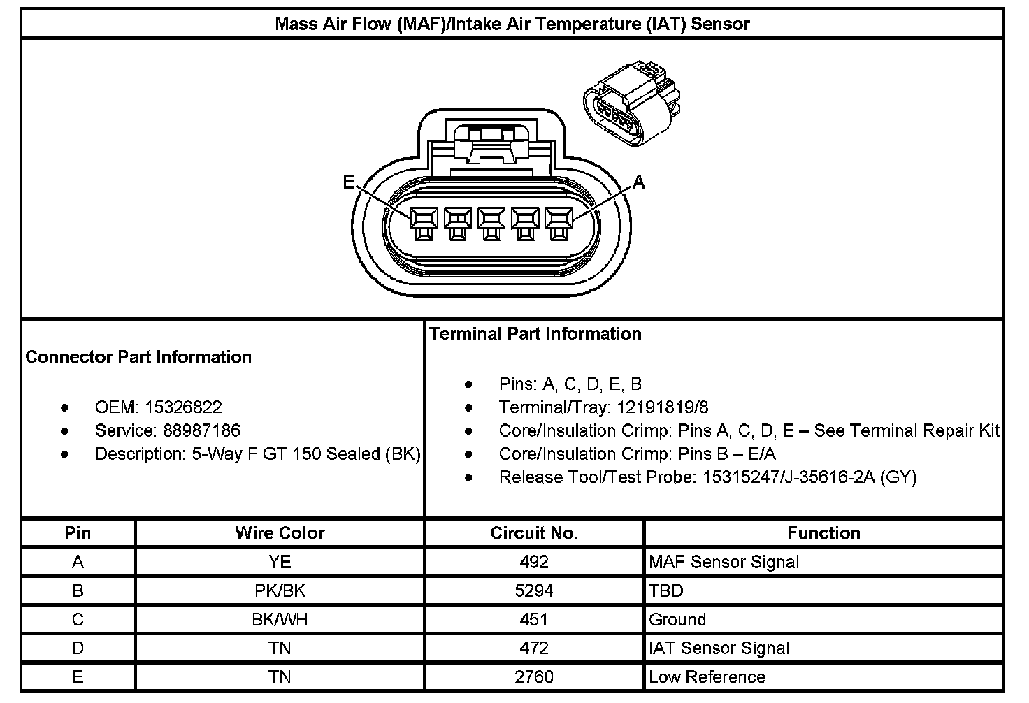 Mass Air Flow (MAF)/Intake Air Temperature (IAT) Sensor: