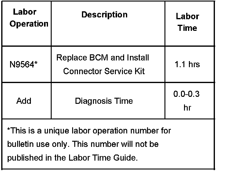 Replace the BCM and install connector service kit, P/N 25777448, at the BCM to prevent these conditions from reoccurring.