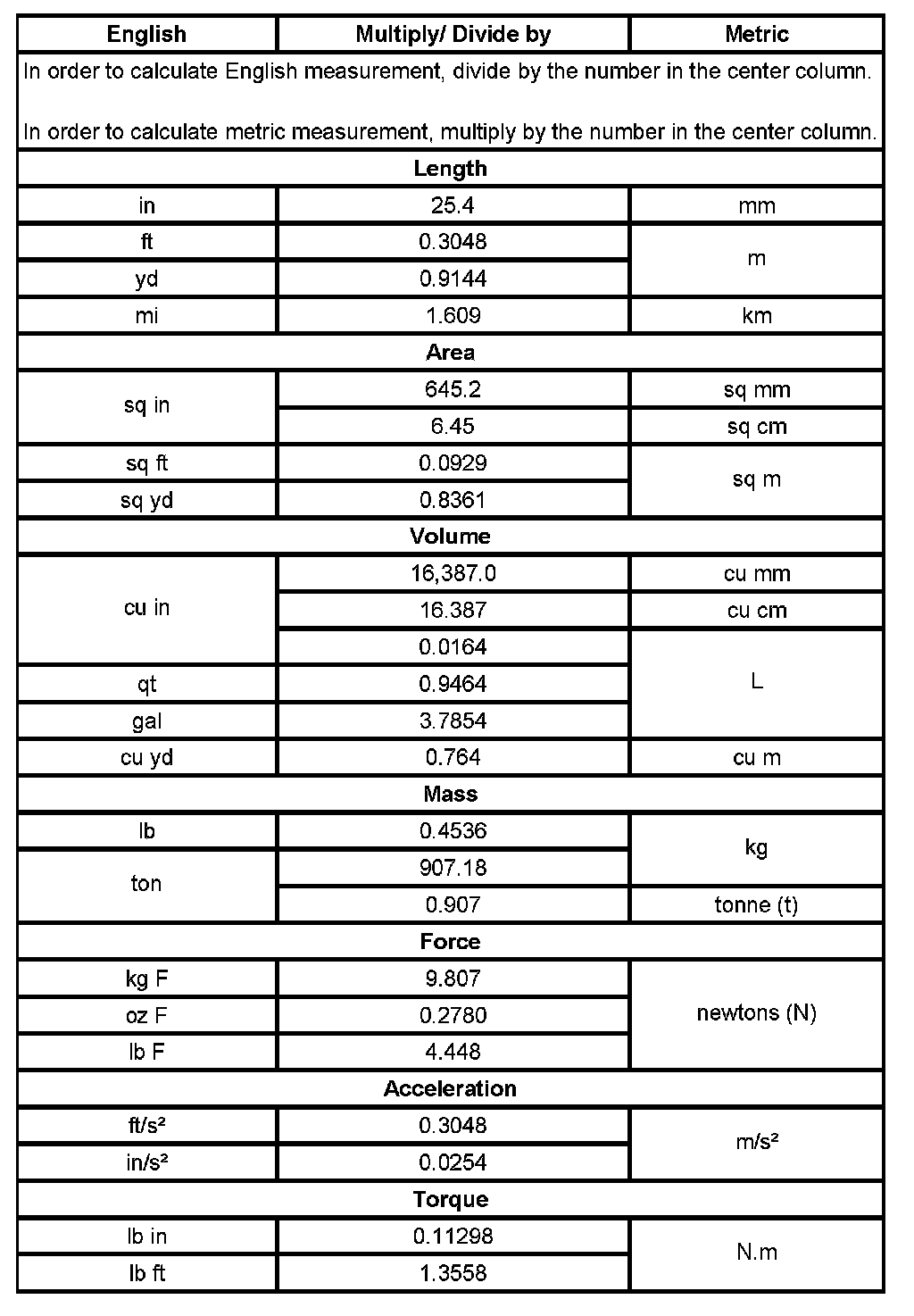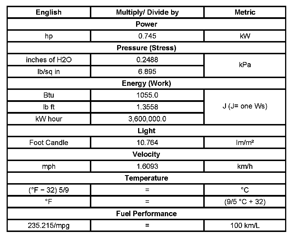 Conversion - English/Metric
