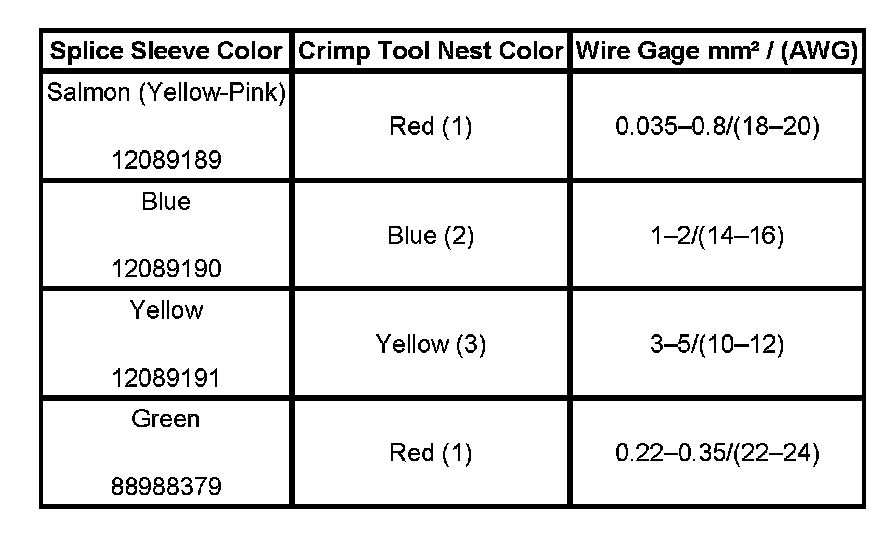 4. Select the proper DuraSeal splice sleeve according to the wire size. Refer to the above table at the beginning of the repair procedure for the color coding of the DuraSeal splice sleeves and the crimp tool nests.