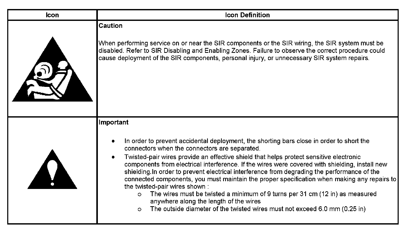 Air Bag System Schematic Icons