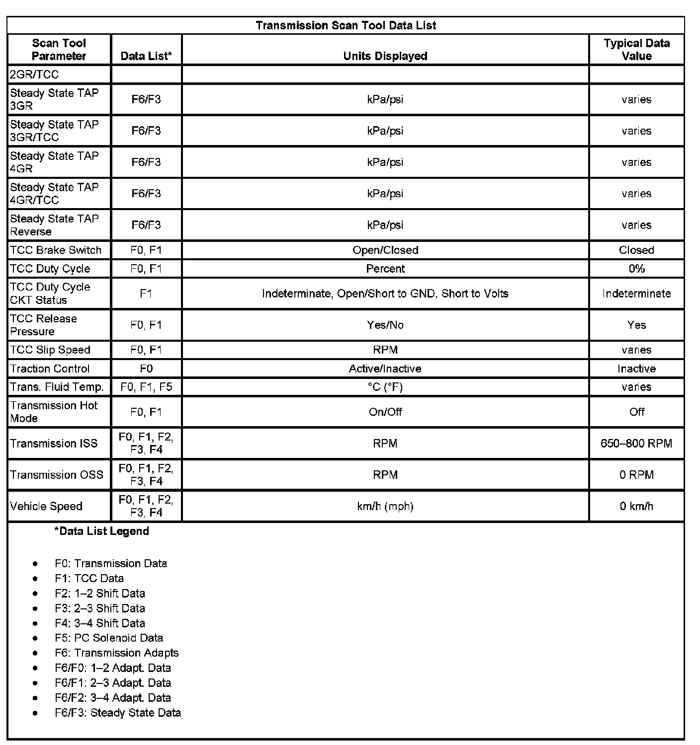 Only the parameters listed below are used in this information for diagnosing. If a scan tool displays other parameters, the values are not recommended by General Motors for use in diagnosis.