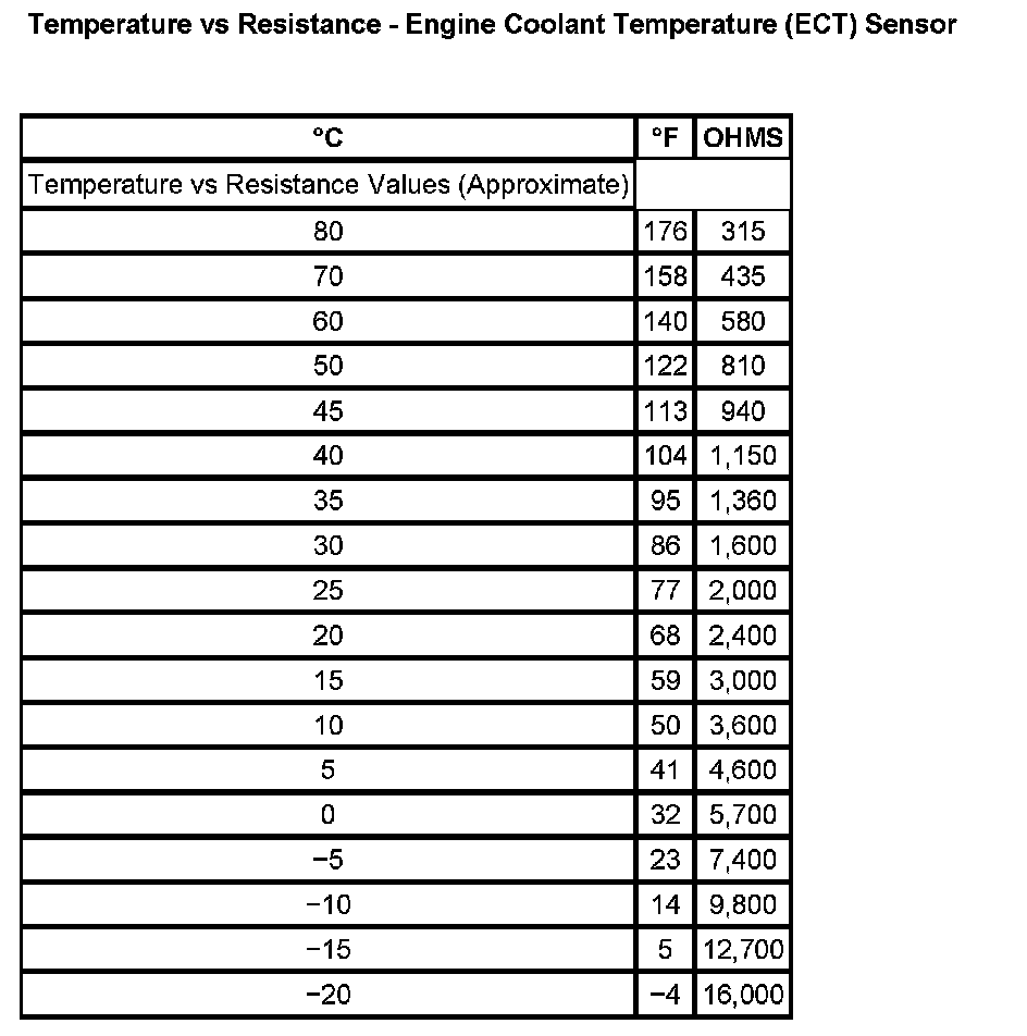 Temperature vs Resistance - Engine Coolant Temperature (ECT) Sensor: