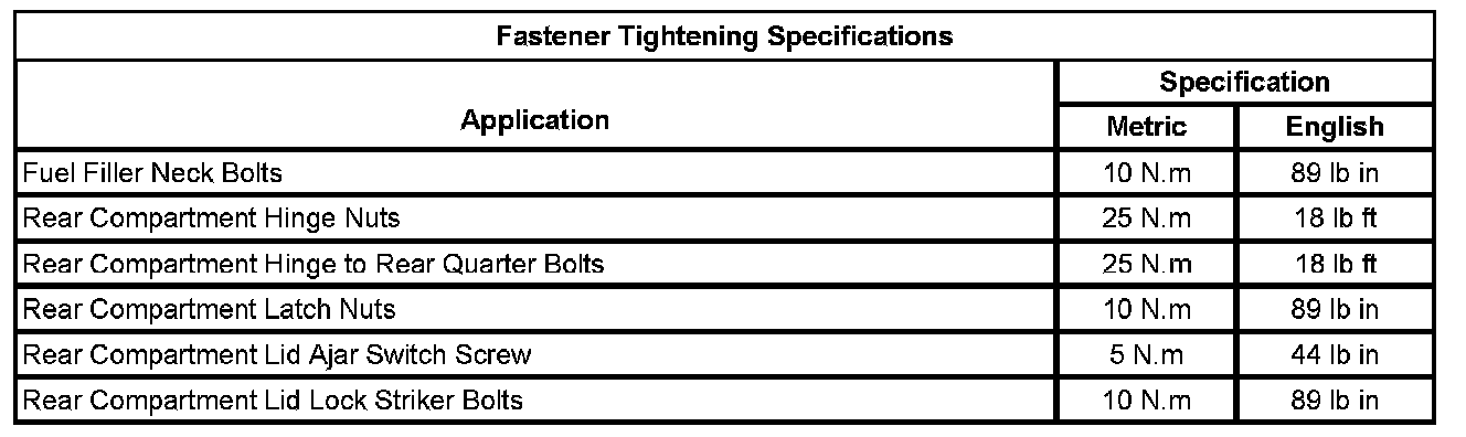 Fastener Tightening Specifications