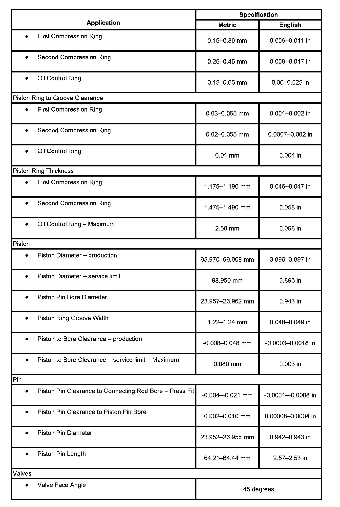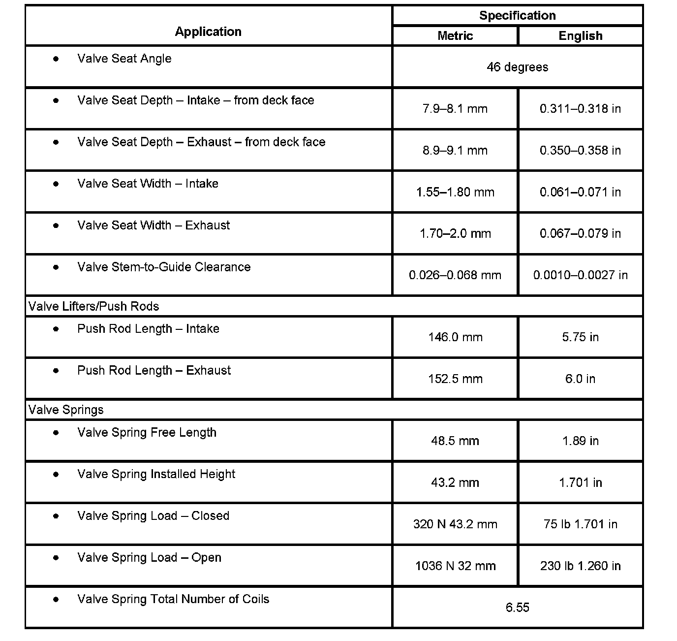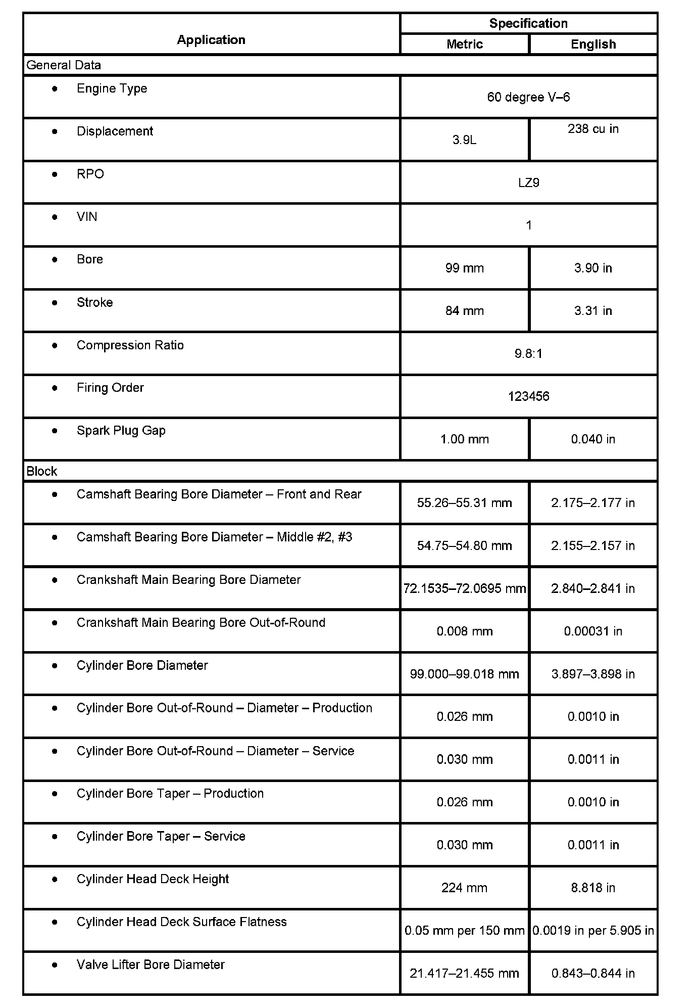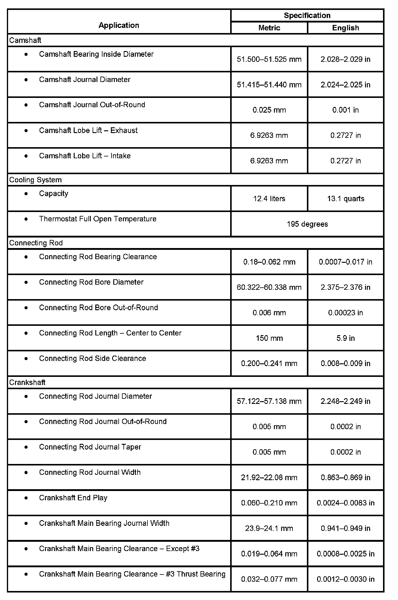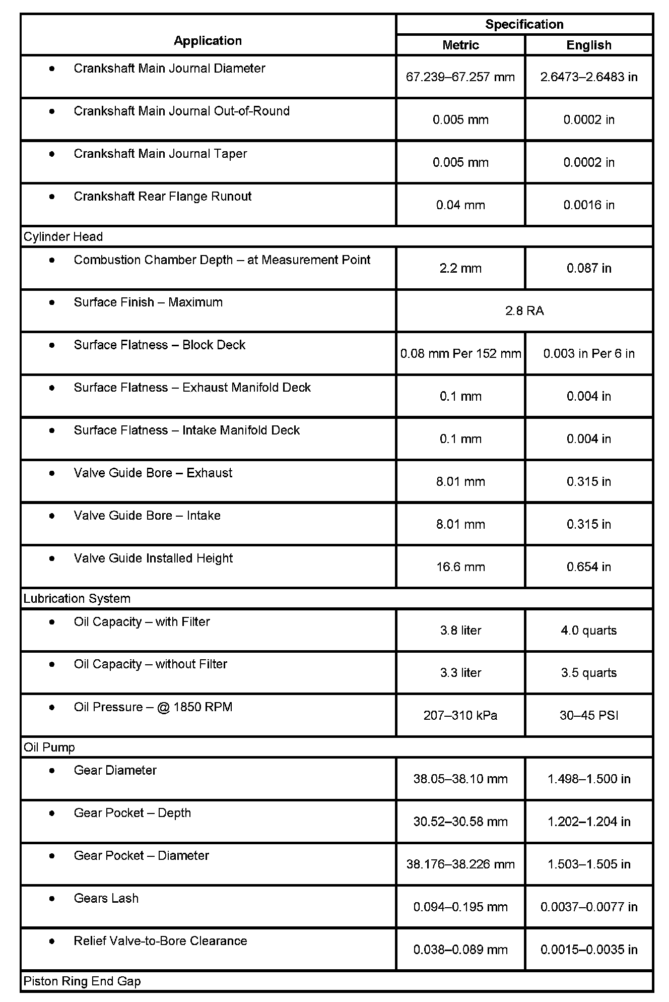 Engine Mechanical Specifications: