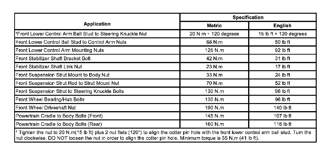 Fastener Tightening Specifications: