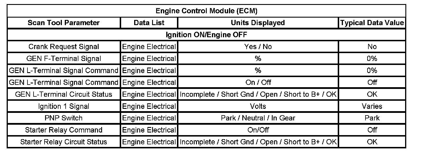 Scan Tool Data List