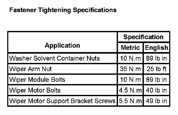 Wiper and Washer Systems: Specifications