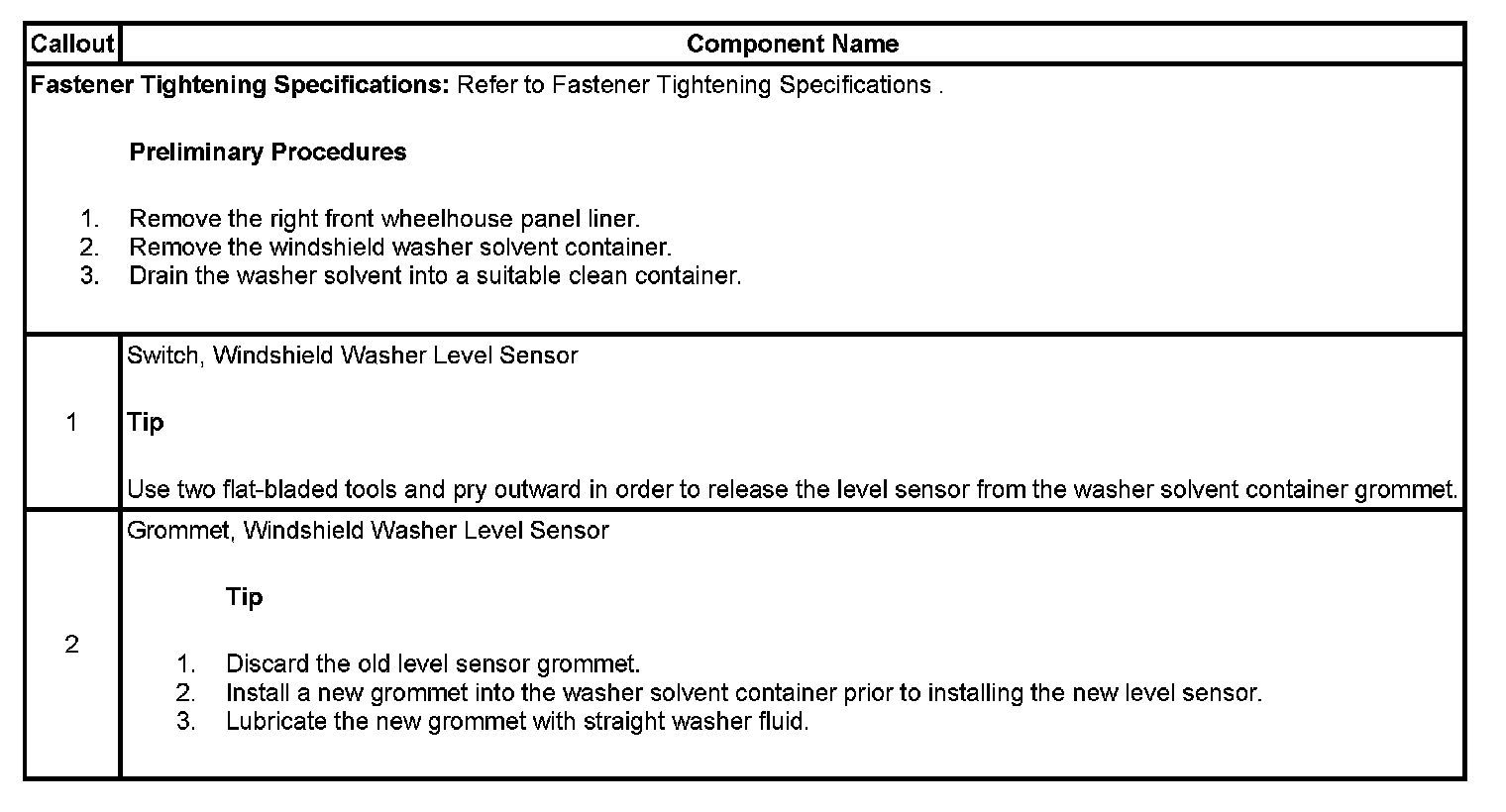 WASHER SOLVENT CONTAINER LEVEL SENSOR REPLACEMENT