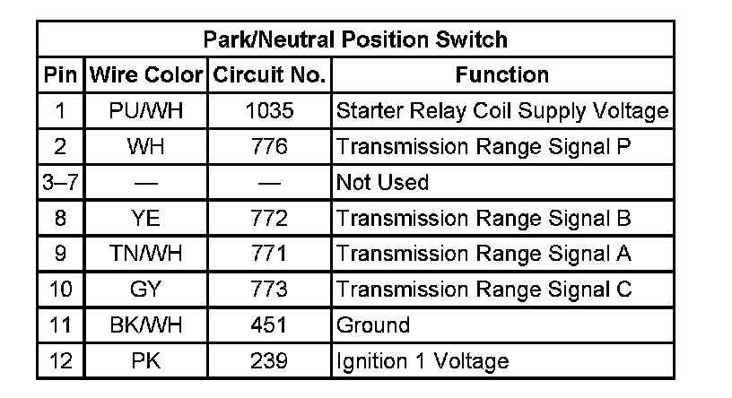 Park/Neutral Position Switch: