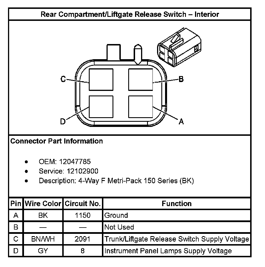 Rear Compartment/Liftgate Release Switch - Interior:
