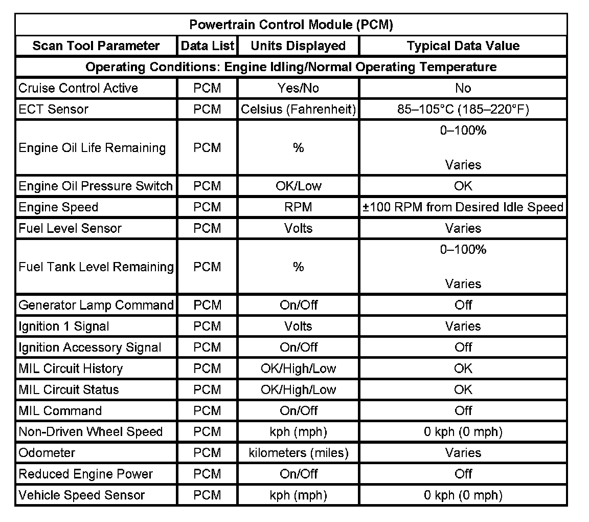 Scan Tool Data List