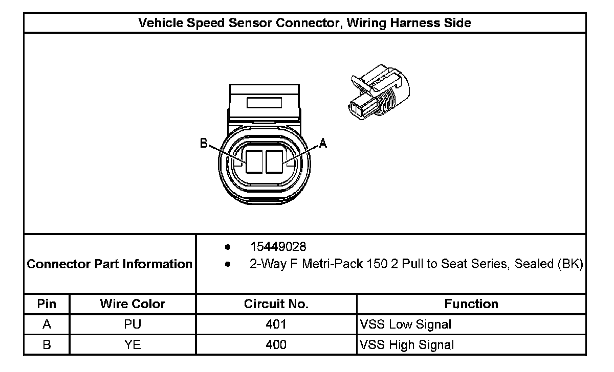 Vehicle Speed Sensor Connector, Wiring Harness Side: