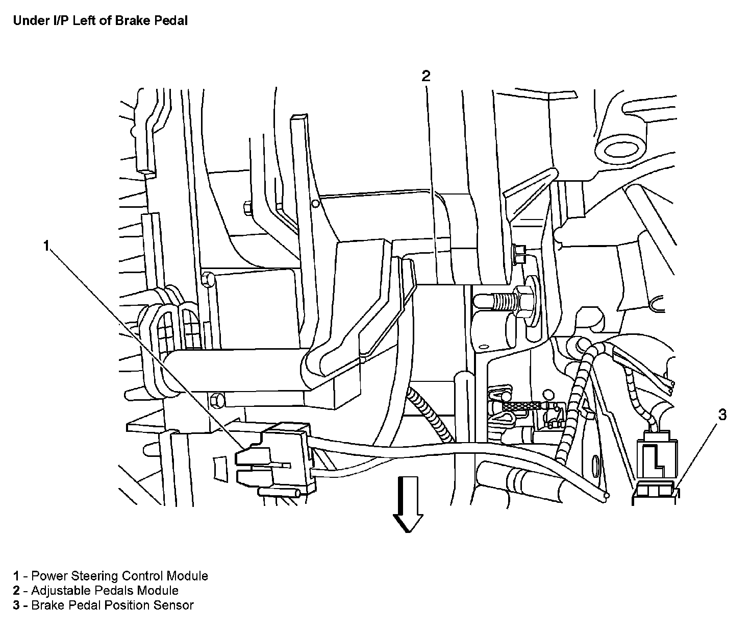 Under I/P Left Of Brake Pedal: