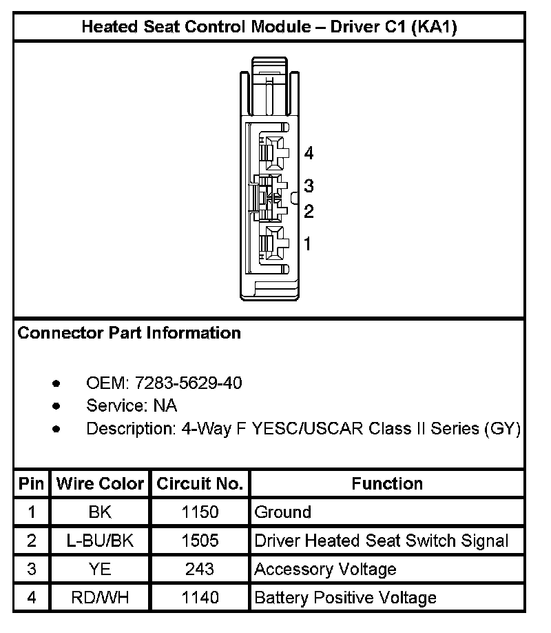 Heated Seat Control Module - Driver C1 (With RPO Code KA1):