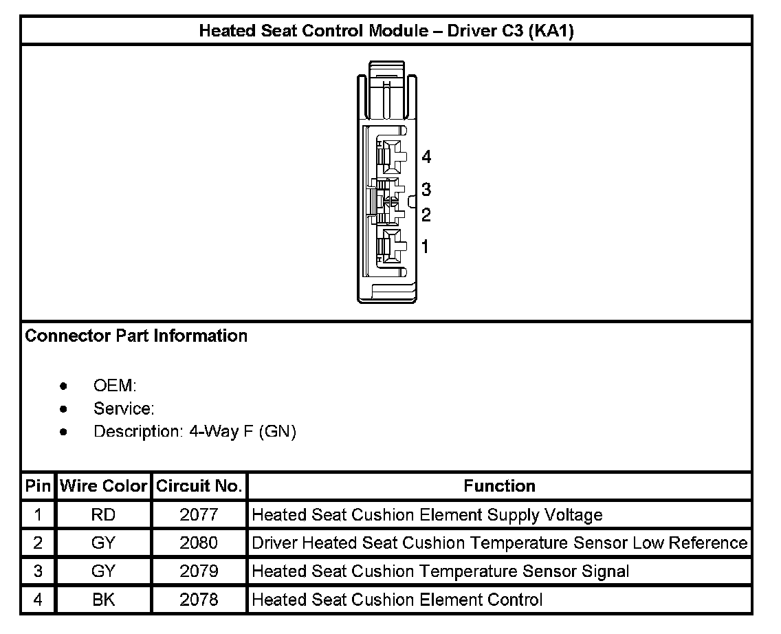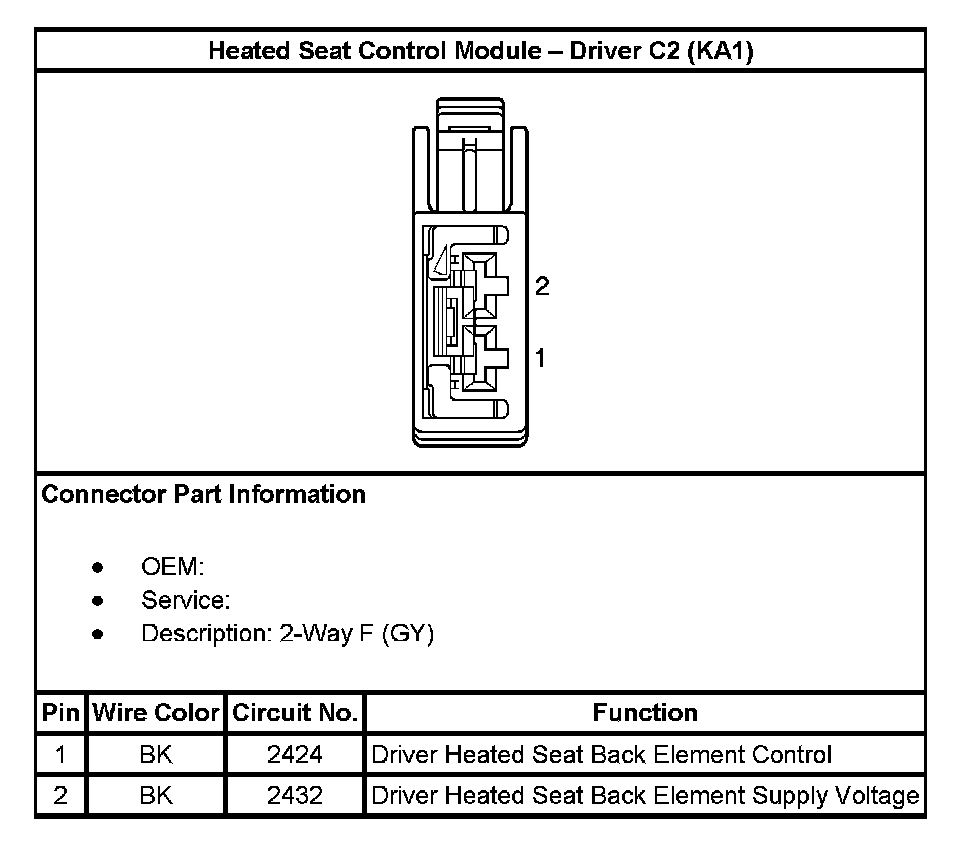 Heated Seat Control Module - Driver C2 (With RPO Code KA1):