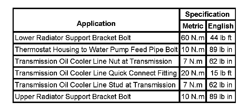 Fastener Tightening Specifications: