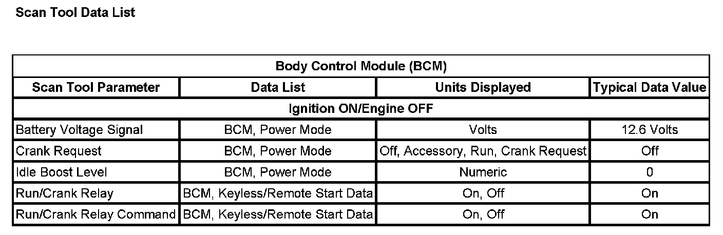 Scan Tool Data List: