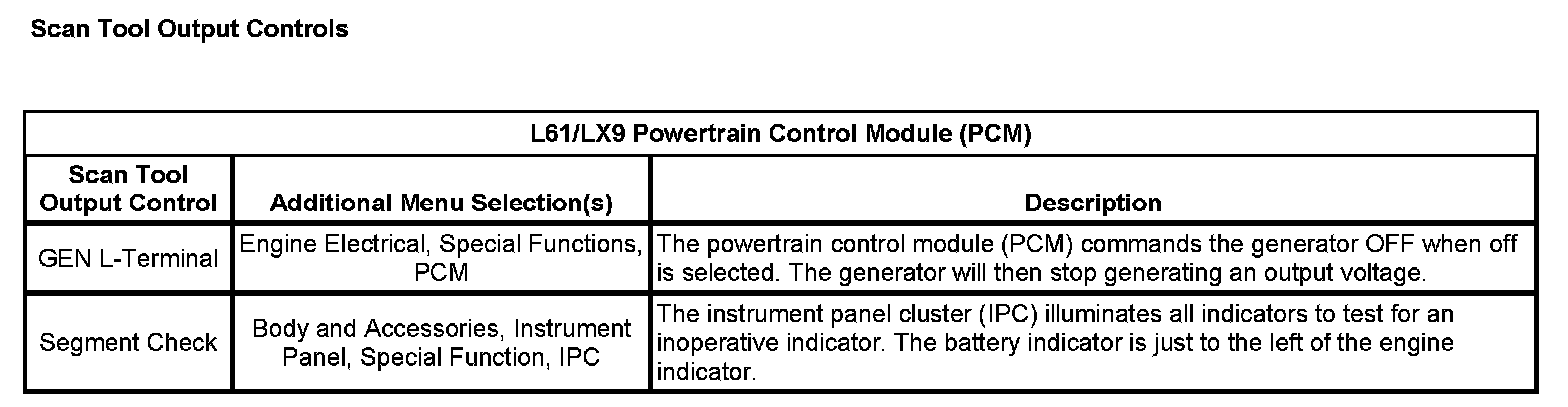Scan Tool Output Controls: