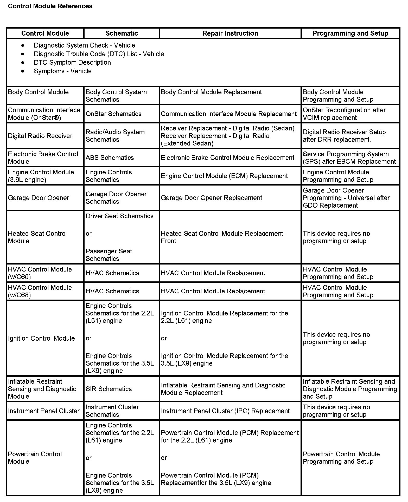 Control Module References (Part 1):