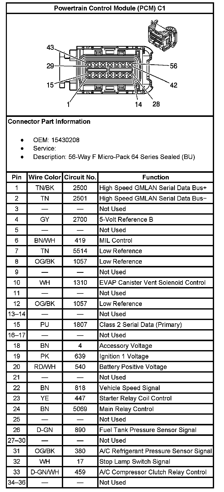 Powertrain Control Module (PCM) C1 (Part 2):