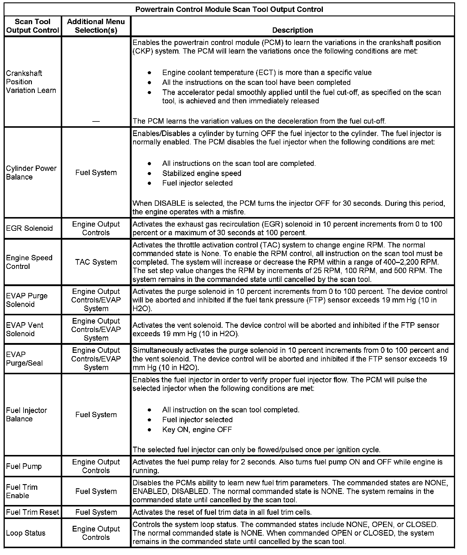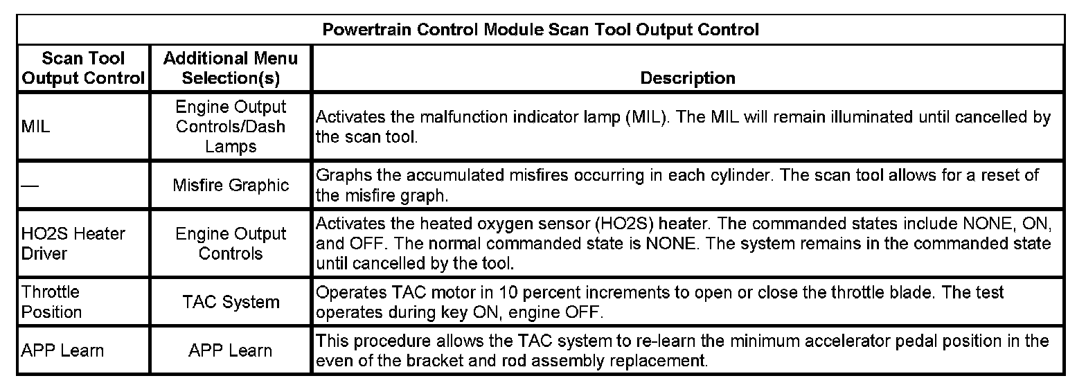 Scan Tool Output Controls