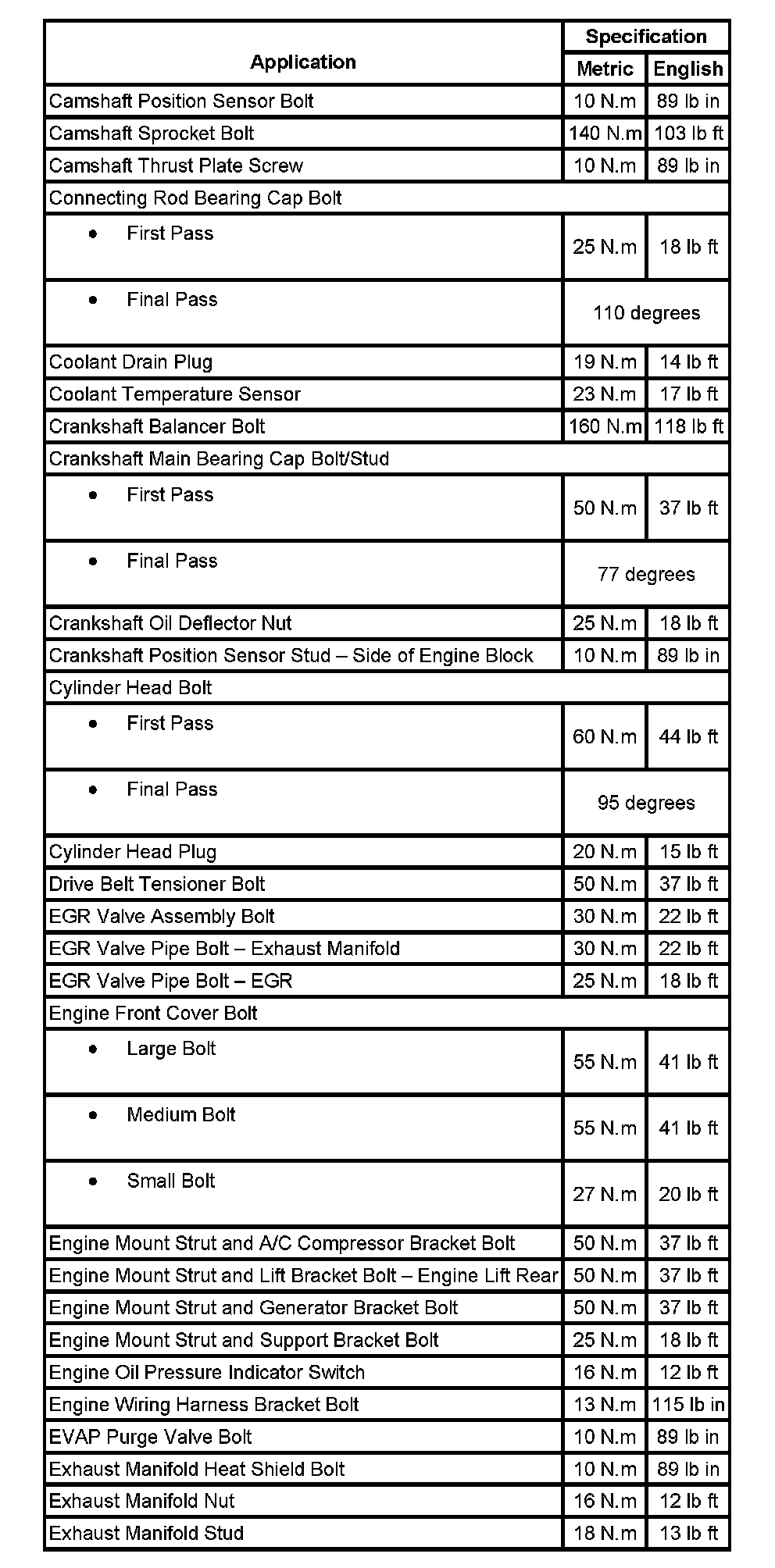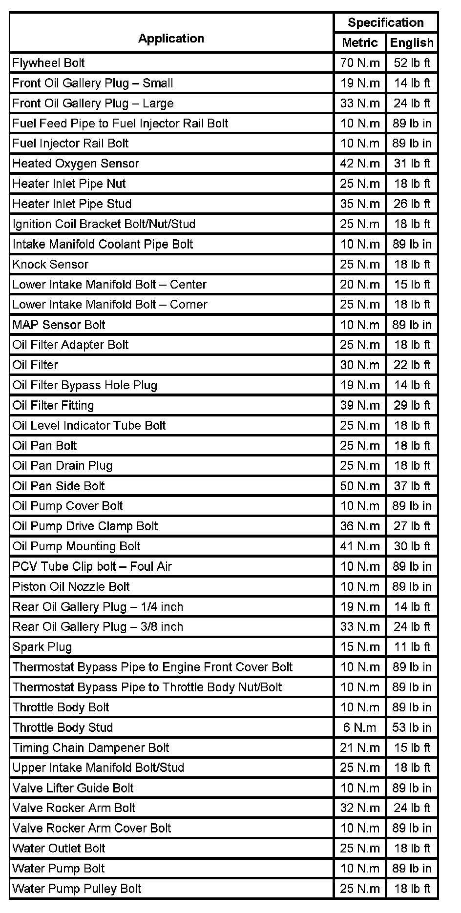 Fastener Tightening Specifications: