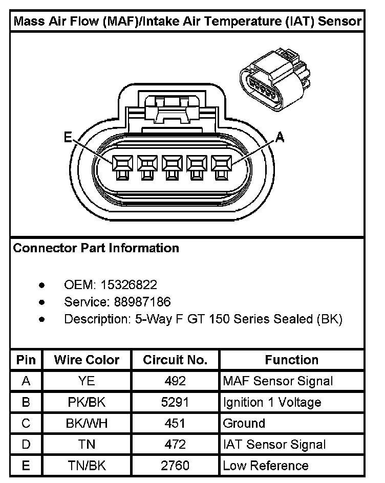 Mass Air Flow (MAF)/Intake Air Temperature (IAT) Sensor: