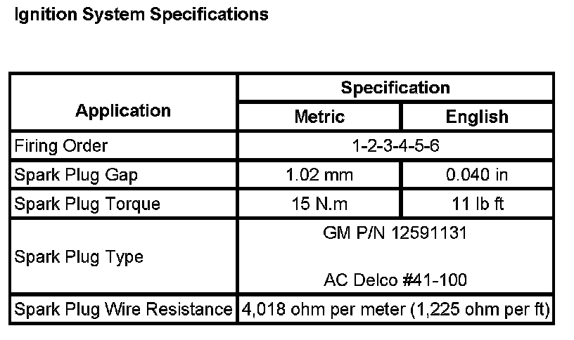 Ignition System Specifications: