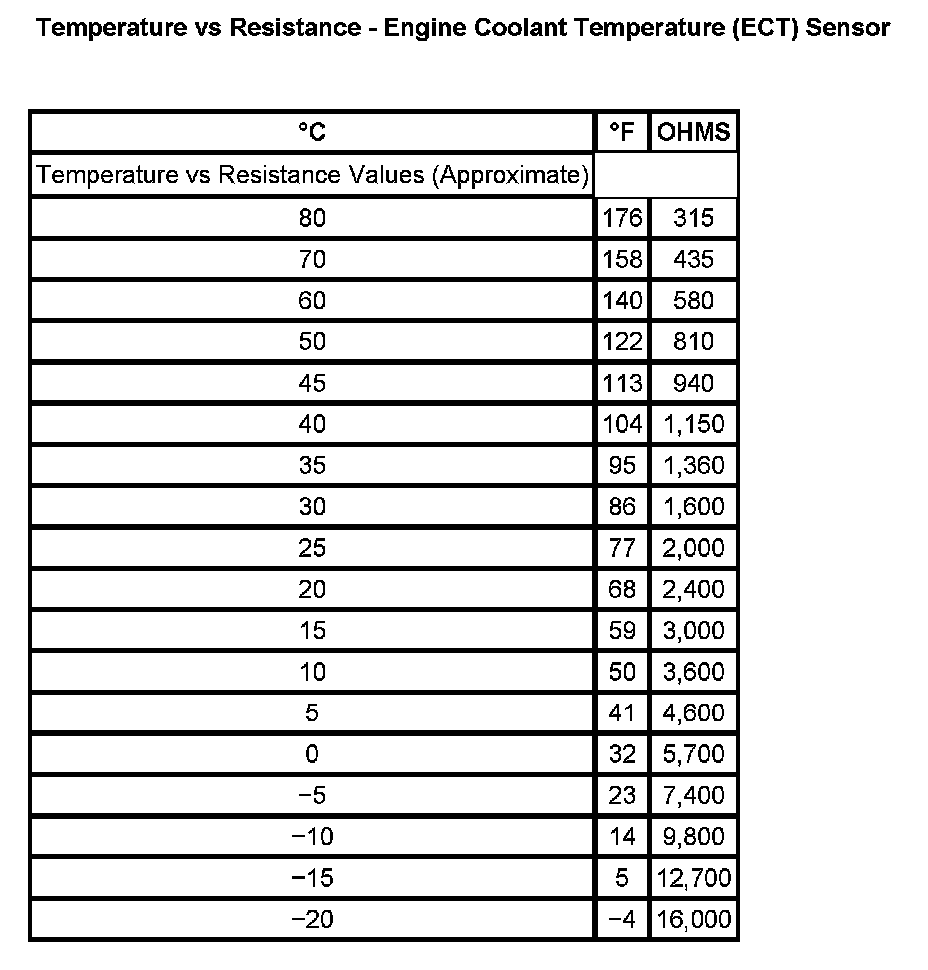 Temperature Vs Resistance - Engine Coolant Temperature (ECT) Sensor: