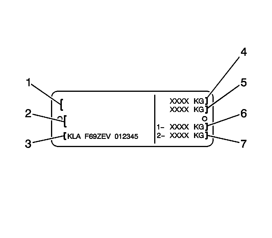 The vehicle identification number (VIN) plate (1) attached to the top of the front panel support.